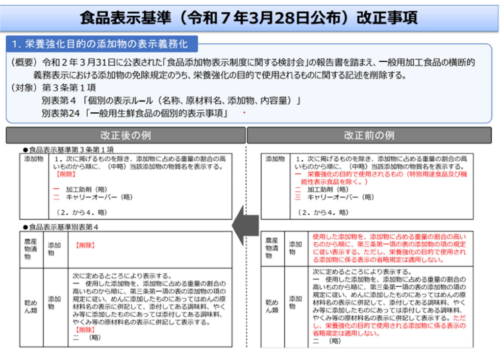 最近では令和7年にも食品表示基準が改正されました。食の安全に関わるところですから新しいルールもしっかりおさらいして覚えないといけませんね。